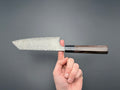 The Bunka combines the best of the Nakiri and Santoku shapes to create a visually interesting blade that performs excellently preparing both meat and vegetables. This knife fits in the Kotetsu Bunka saya. Please note that the saya is not made especially for the knife so there is a little bit of wiggle room towards the tip.